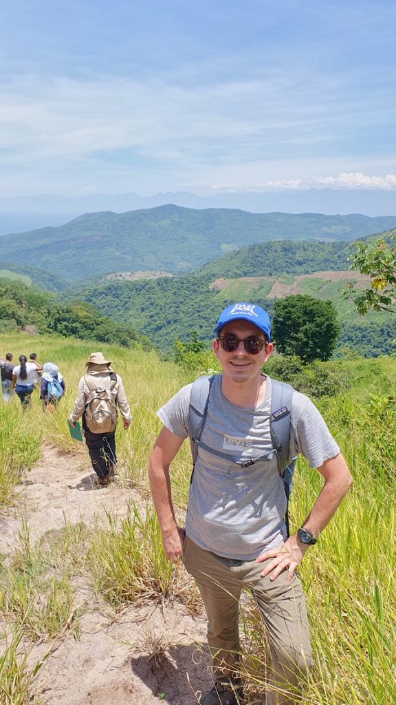 Photo (right): Silvan during his field research in Colombia with the Sierra Nevada de Santa Marta mountain range in the background.